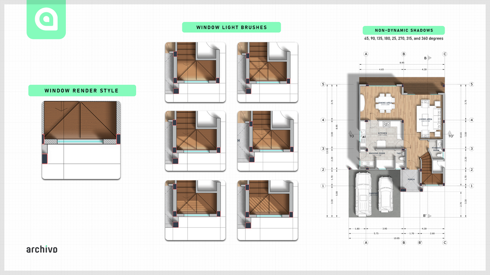 - 8 Non-dynamic Shadows: 45deg, 90deg,135deg, 180deg, 225deg, 270 deg, 315deg, and 360deg Shadows